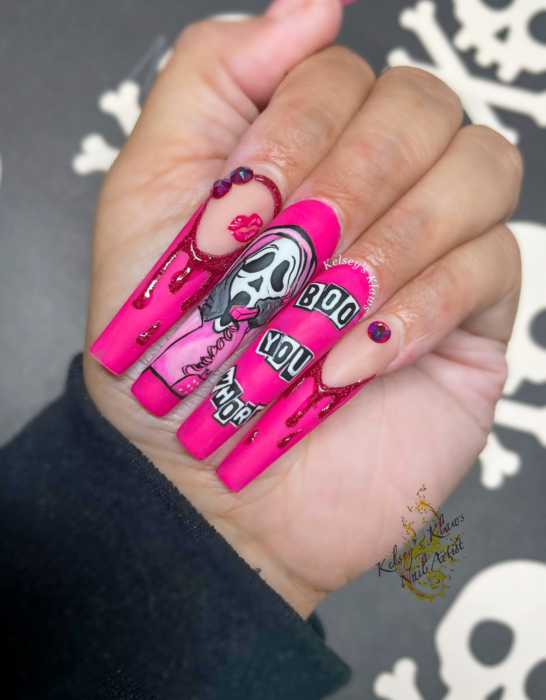 Time for the spooky season to begin, be ready with some fabulous Halloween nails! They are hand painted with 1 character and feature iconic lettering.