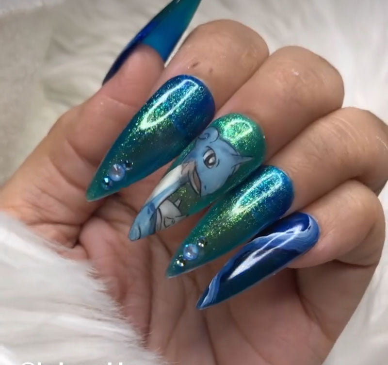 These adorable nails feature your choice of a Pokémon and artist’s choice for the rest of the nails.