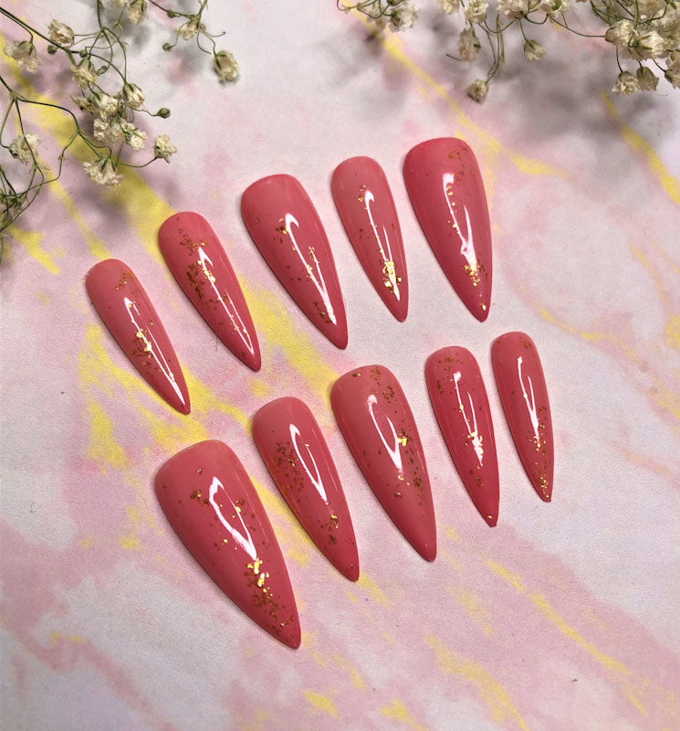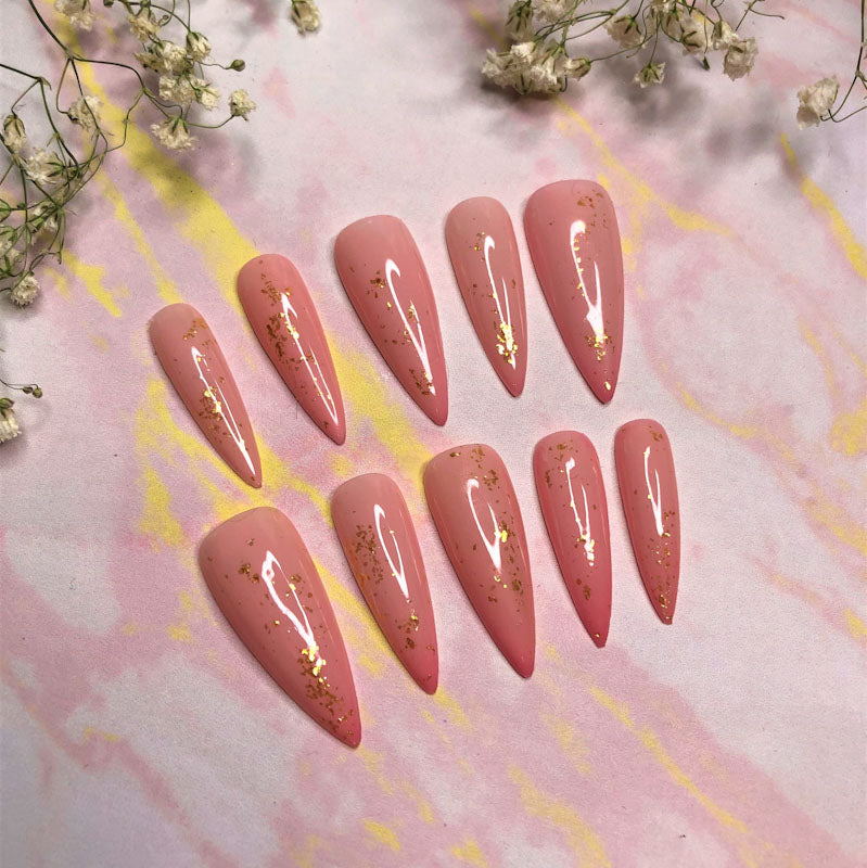 How cute are these color changing nails?? A beautiful rose pink to a milky baby pink with gold flake accents. Simple, but beautiful!